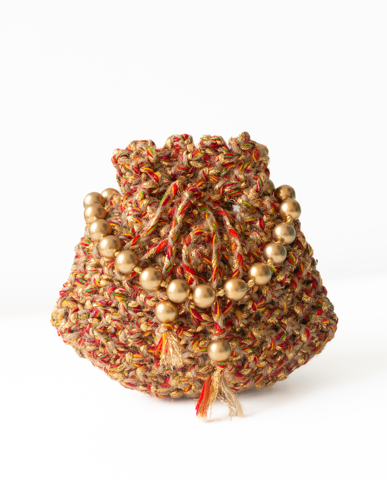 The DecorDill Noor Potli Handbag is gracefully handcrafted by Indian artisans, blending tradition with contemporary flair. Made from eco-friendly jute fabric, this potli brings a natural, earthy elegance to your festive and everyday looks. Designed with a spacious drawstring compartment, it keeps your essentials secure while offering effortless carry. Lightweight, durable, and beautifully detailed, the Noor Potli is perfect for weddings, poojas, gifting, or styling with ethnic wear.
