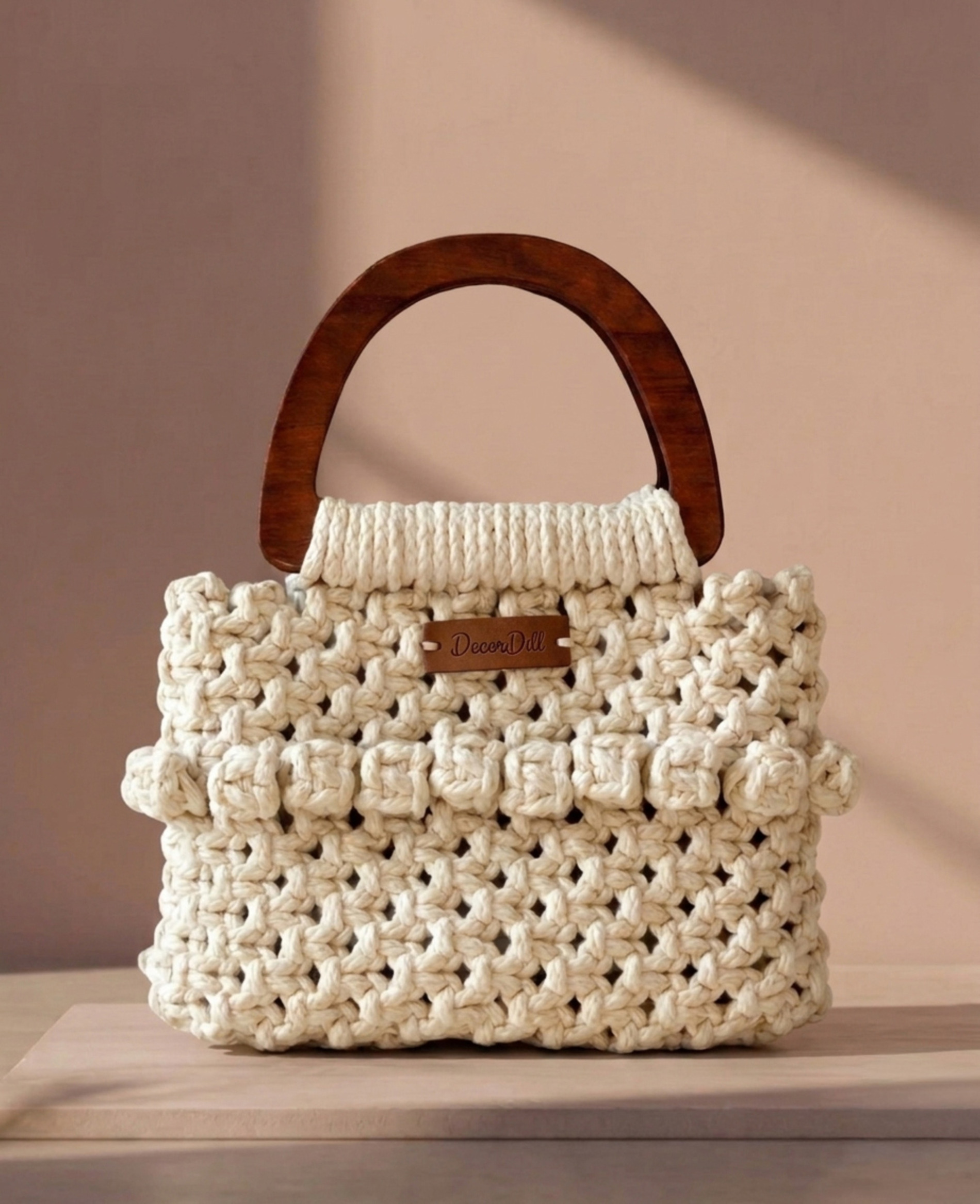 All our bags are handcrafted by our Indian artisans. This Hand-Knotted Flower Handbag will make you the center of attention wherever you go, get ready to receive lots of lovely compliments. You can wear it out for social occasions. The bag contains a single compartment and has an attachable pouch with a button to keep your valuables safe.