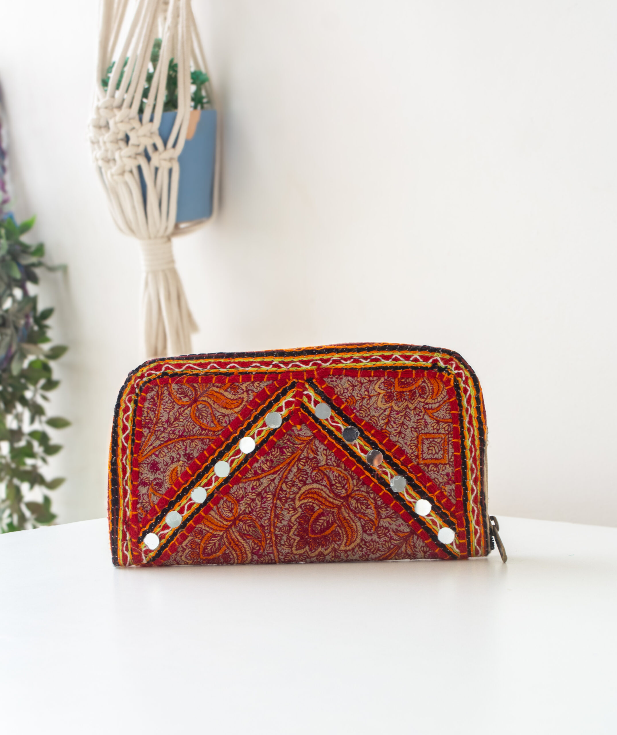 HomeBagsHandbags Handcrafted Banjara Patchwork Clutch – Red